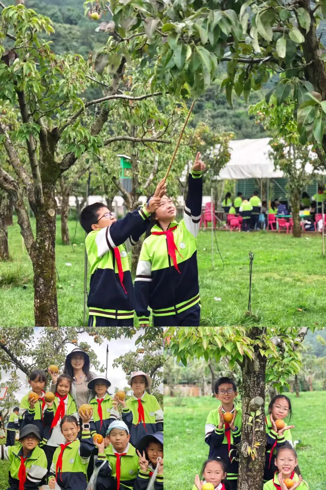 作为呈贡地域文化名片的宝珠梨,成了此次秋游的“特色体验课”。孩子们踮着脚尖、托着小筐,小心翼翼摘下挂满枝头的宝珠梨,指尖触到梨皮的清甜,耳边听老师讲宝珠梨的种植故事。咬一口脆嫩多汁,把呈贡的地域味道尝进嘴里,也把文化的小种子悄悄种进心里。