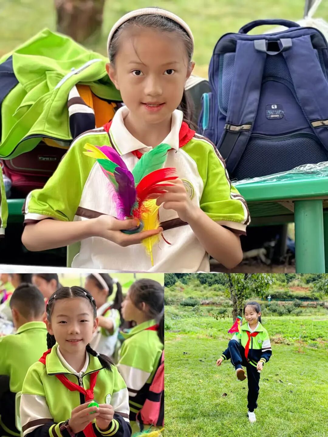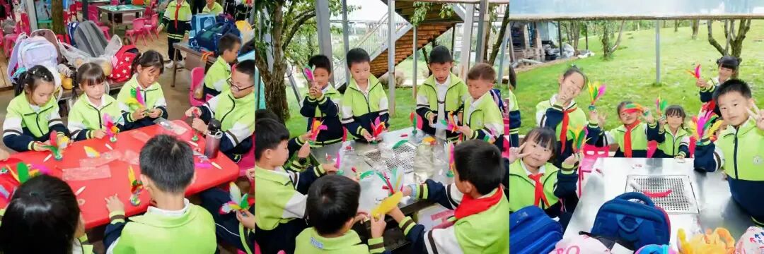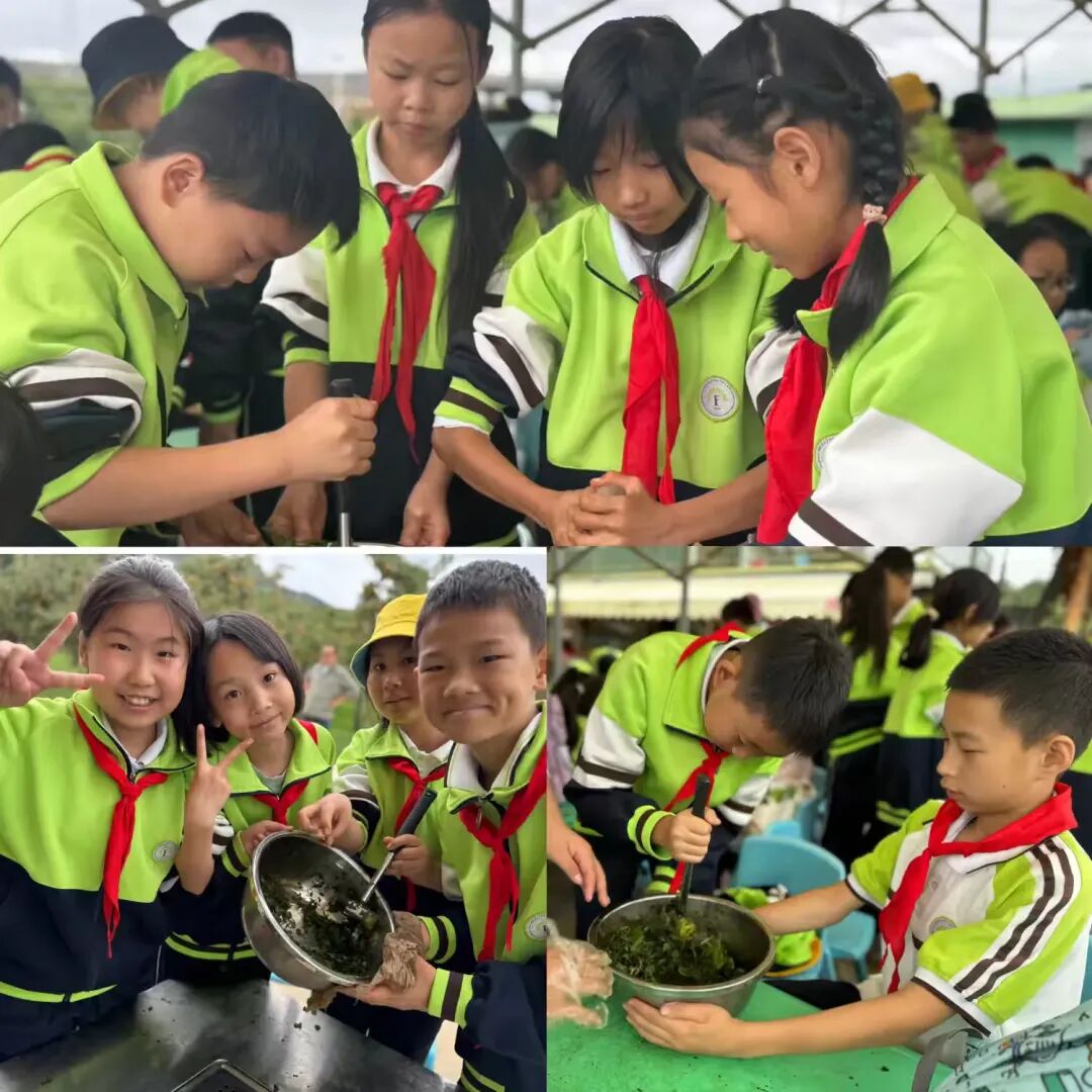 开展“挖红薯”“制作艾条”“制作鸡毛毽子”三项活动:挖红薯时,学生亲手探索土壤与作物的生长奥秘,直观感受大地的馈赠;制作艾条是自然与技艺的结合,学生在选绒、卷制中传承实用技能;制作鸡毛毽子则是废旧材料的创意转化,学生搭配羽毛、固定底座,在动手实践中培养创新思维,让劳动教育充满趣味。