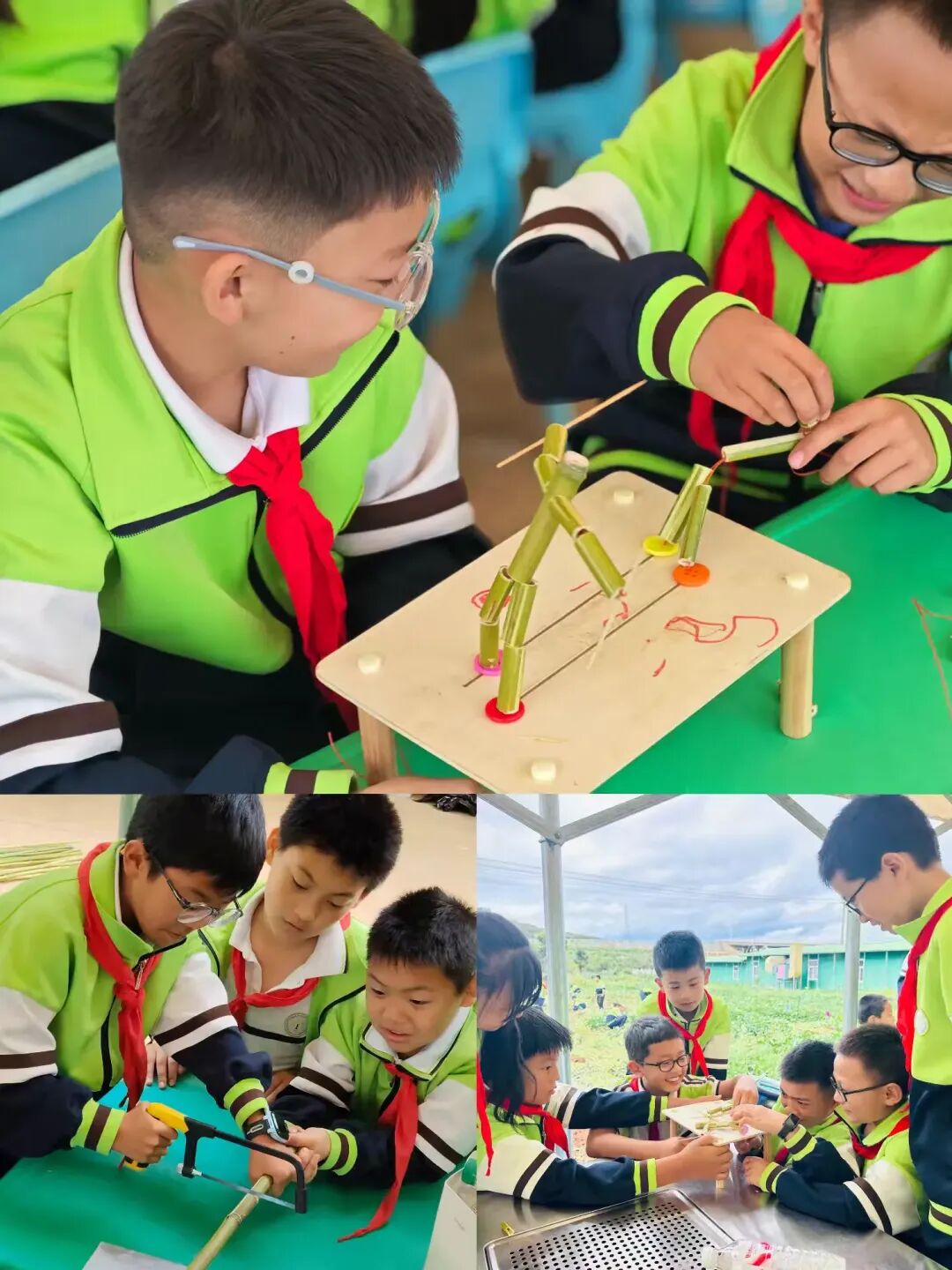 聚焦“竹节人制作”“挖红薯”两项实践活动:通过竹节人制作传承传统工艺,学生在锯竹、钻孔、组装的过程中,锻炼动手能力与工程思维;参与挖红薯等田间劳作,毕业生以实际劳动致敬自然,深刻领悟“一分耕耘一分收获”的哲理,为即将开启的新成长旅程积蓄力量。