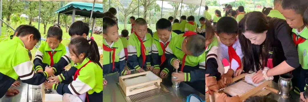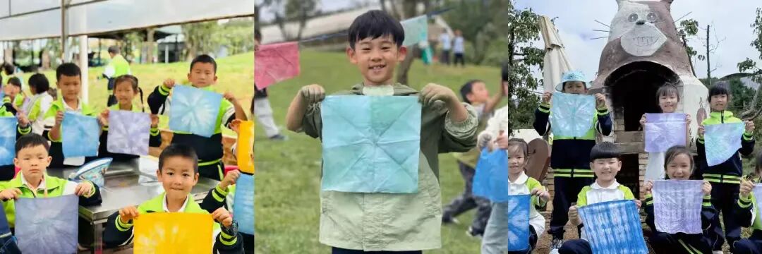 以“掰玉米”活动开启农事启蒙,学生亲手收获金黄饱满的玉米,在协作劳作中感知“春种秋收”的自然节律,既锻炼了手部力量,也培养了团队配合意识;后续“扎染工艺体验”两项活动,将劳动与艺术巧妙融合——浸染布料的过程中,学生既能感受传统工艺的独特魅力,又能激发自身的审美创造力,让劳动教育温柔浸润童心。