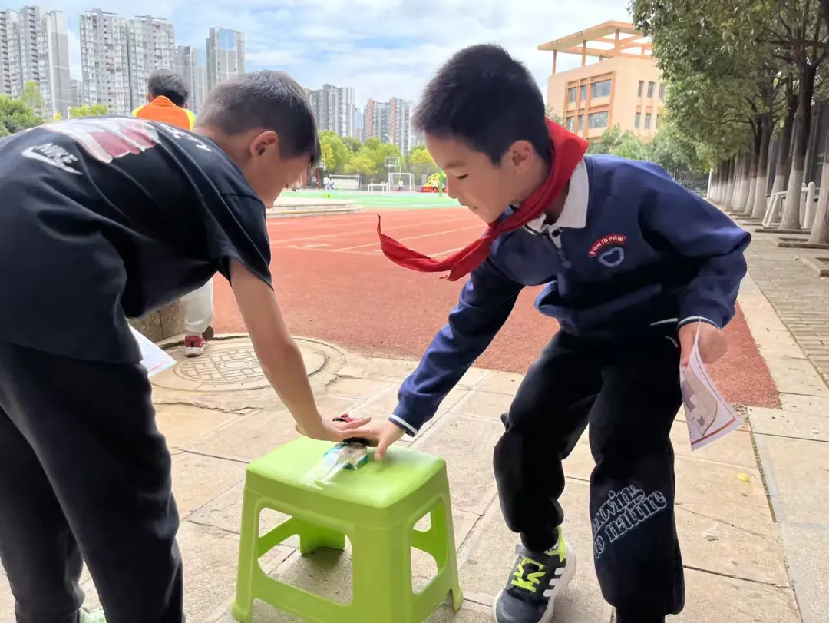 作为数学节的“常驻嘉宾”,百米定向赛是数学与体育跨学科融合的典型载体——既让孩子们运用数学中的位置与方向、比例尺知识解读地图,又通过奔跑完成定向任务,将抽象的数学概念融入动态的体育实践。孩子们手持地图穿梭,在“动起来”的过程中吃透知识,真正让“工具+知识=答案”有了鲜活的跨学科注脚。