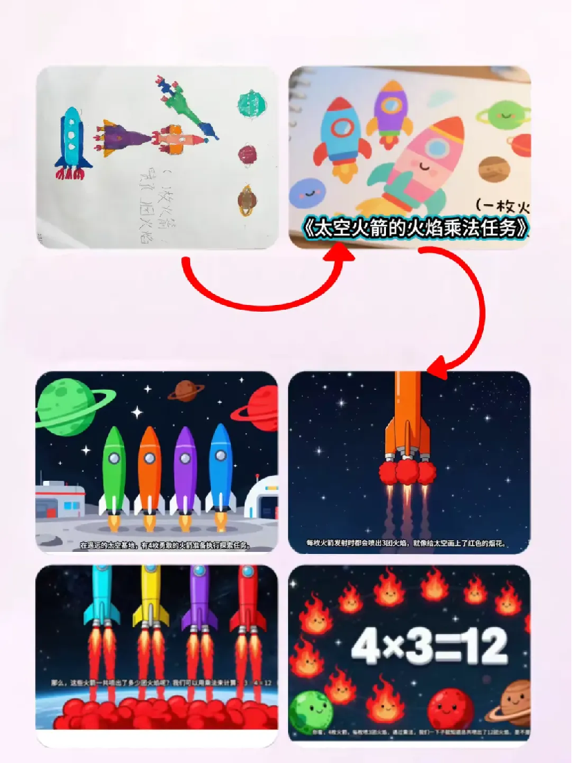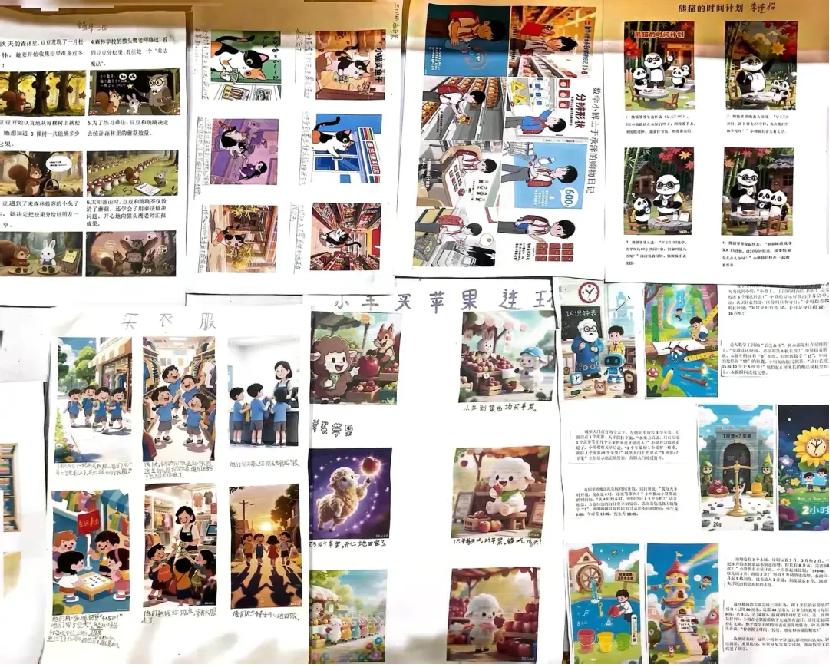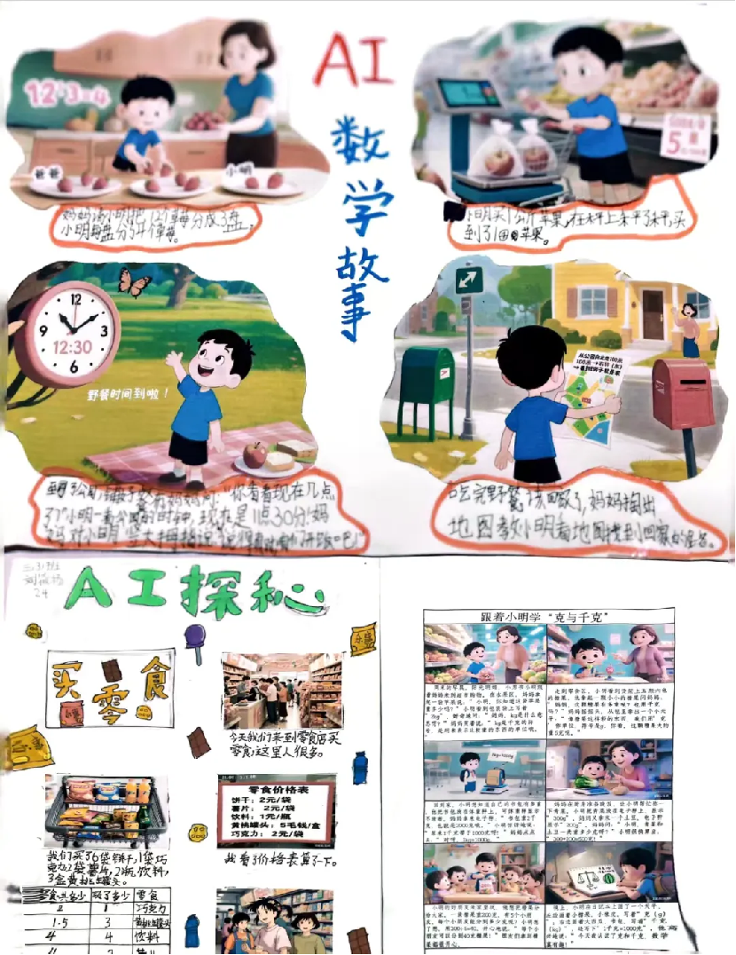 此次数学节的一大创新,是首次打造“数学+AI”深度融合场景——豆包、DeepSeek等智能工具不再是单纯的科技元素,化身成为孩子们的“专属数学伙伴”。经过一个暑假的探索,孩子们以数学知识为内核,用AI创作了故事汇、连环画、绘本小故事等成果,在趣味交互中既深化了数学理解,更直观感受着科技与数学碰撞的奇妙火花。