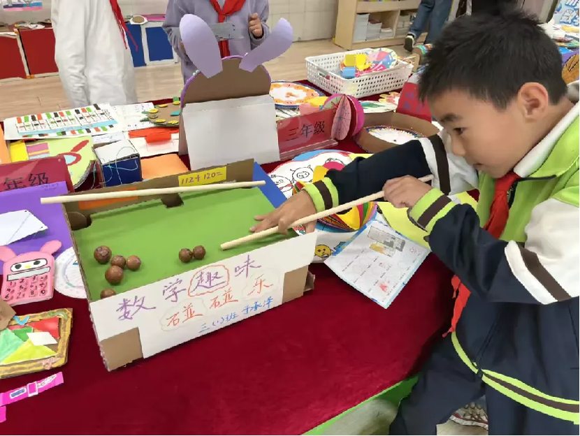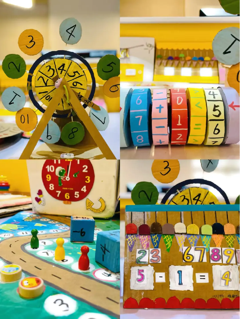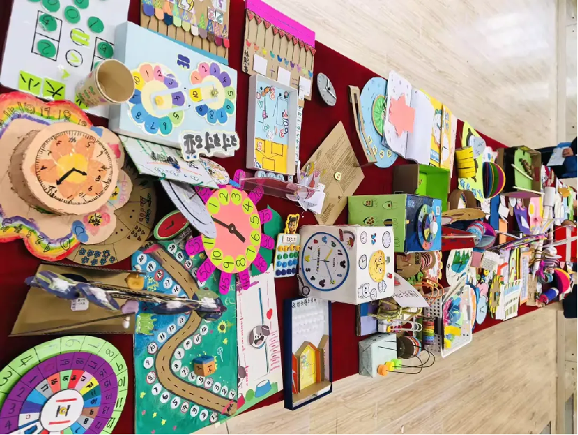 “数学工具坊”里,孩子们化身小小设计师,这场创作正是“数学+美术”“数学+科学”的跨学科实践。孩子们既要用数学知识规划工具的结构,用美术创作设计外观色彩,还要靠科学方法解决材料拼接、功能实现的问题,最终完成数学工具的“创作再生”。而这场创意工具秀的自制学具,不只是手工作品,更让孩子们直观懂了:数学知识能通过自己的双手,把课本里的抽象符号,变成能摸、能玩、能学的“小帮手”。