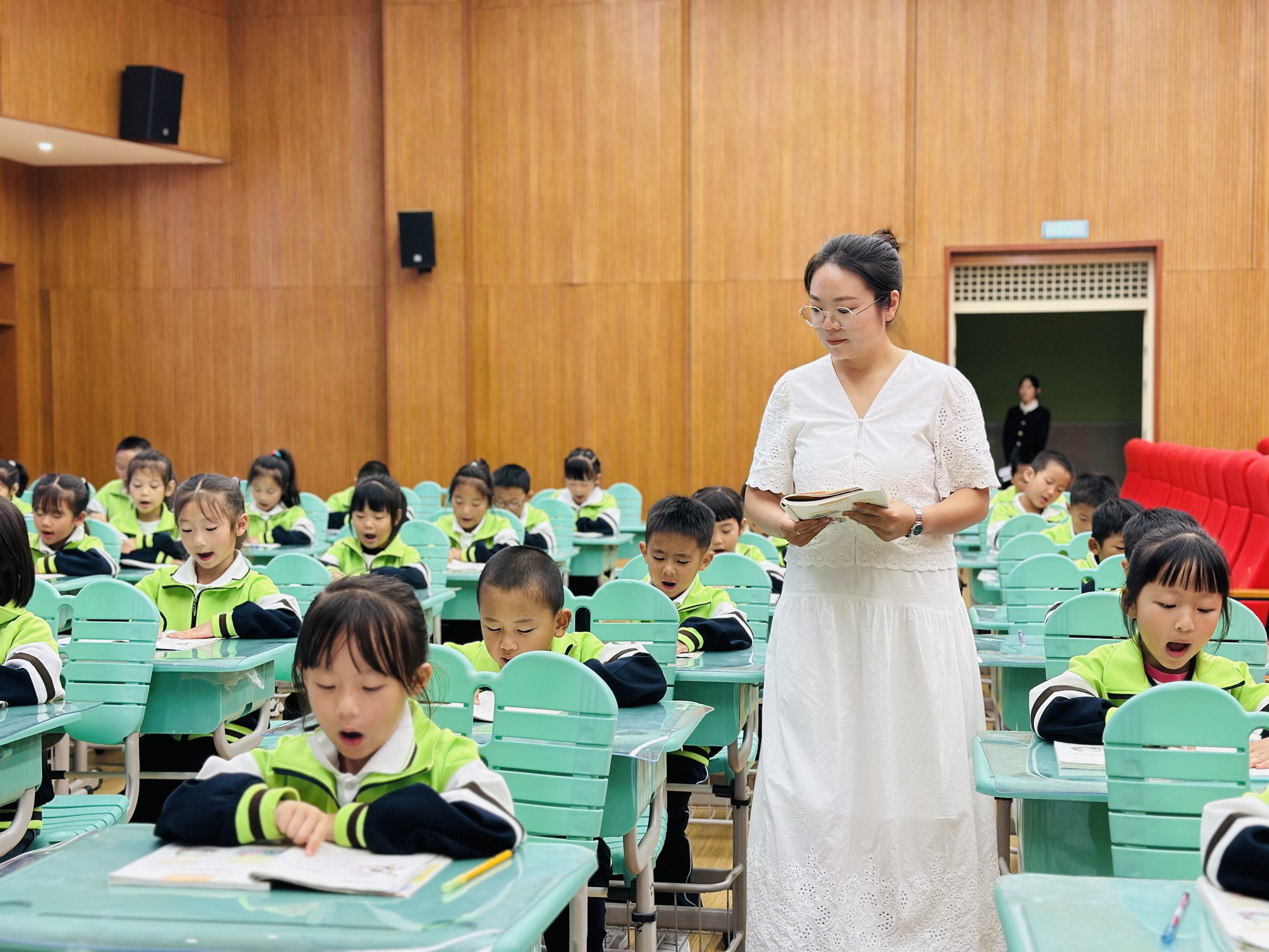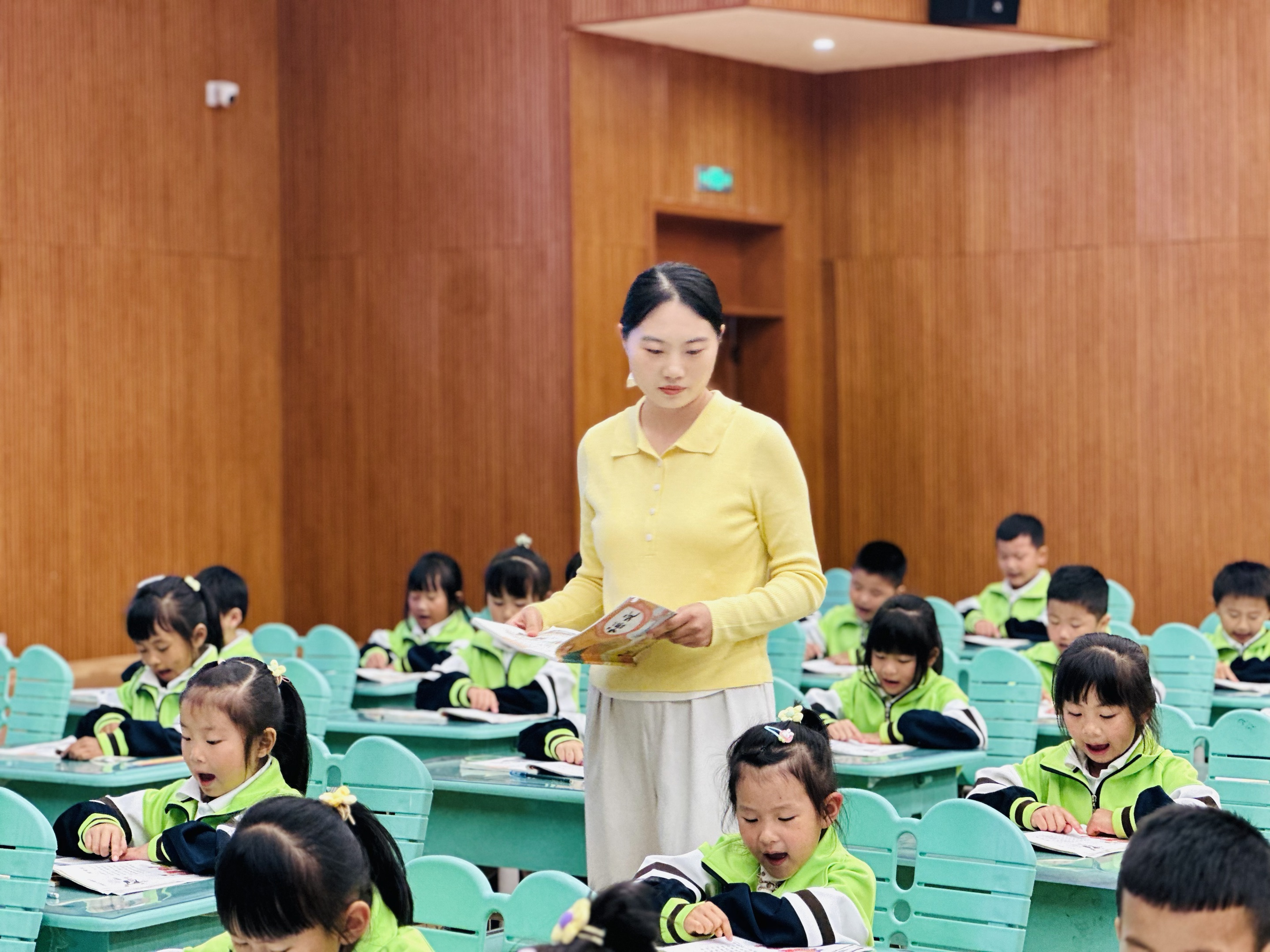 “一二三!”“坐端正!”“小眼睛!”“看黑板!”师生间的互动口令一呼百应,声音响亮得能穿透窗户。没有拖沓,没有含糊,每一声应答都透着专注。这口令不只是“规矩”,更像班级的“精神开关”,一喊响,所有小脑袋都跟着聚焦,整个课堂瞬间充满向上的劲儿。