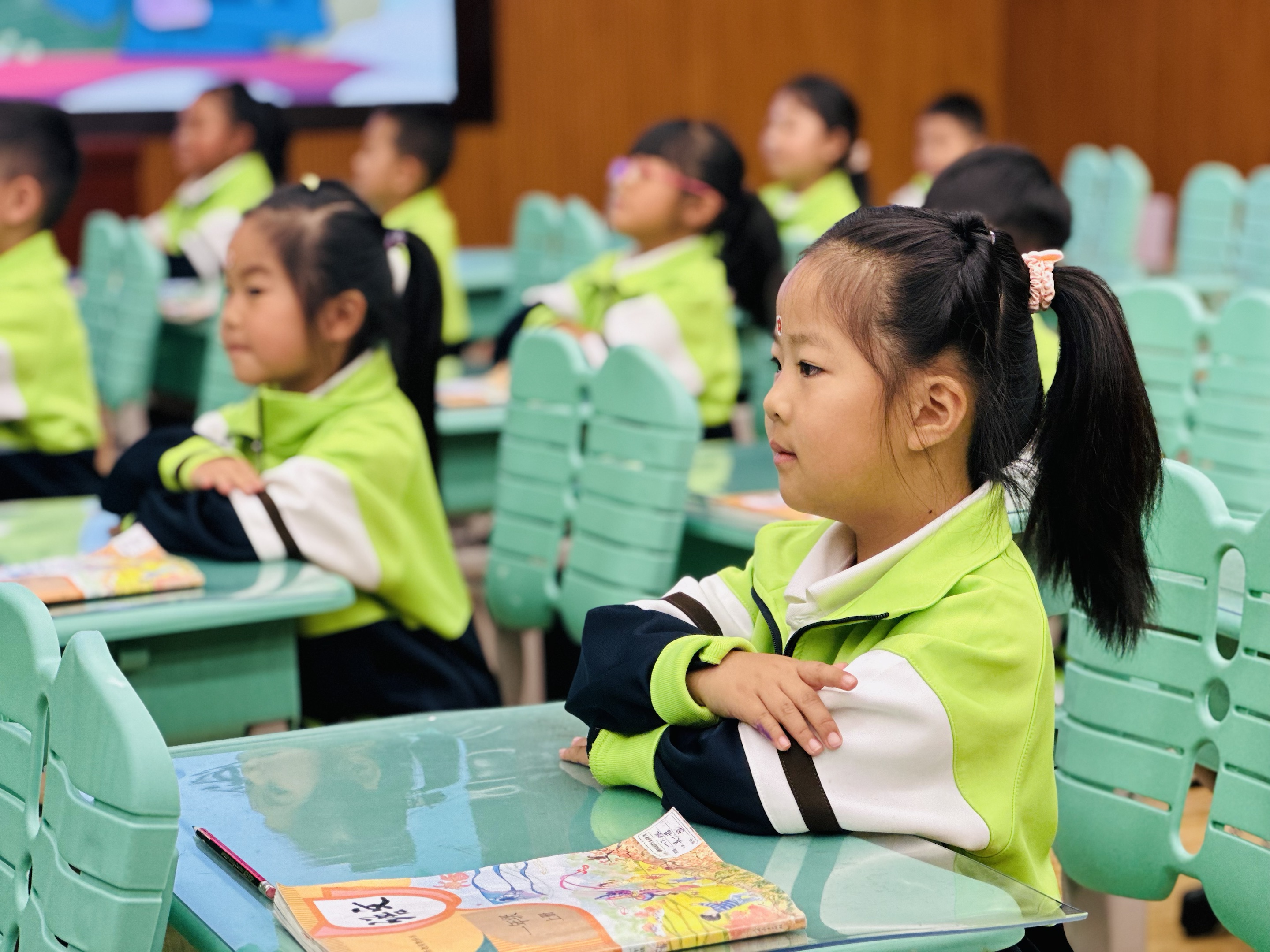 最打动人的,从来不是“完美的规矩”,而是孩子们眼里的光。回答问题时,小手举得高高的,声音响亮又自信;听课时,眼神紧紧跟着老师,连眉头都透着认真。那股子对知识的渴望,让整个教室都充满了生命力——这才是一年级课堂最该有的样子。