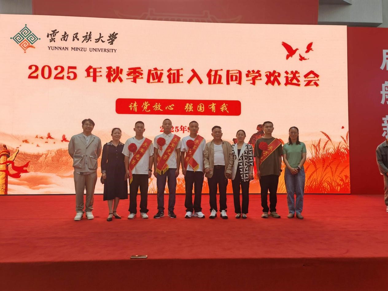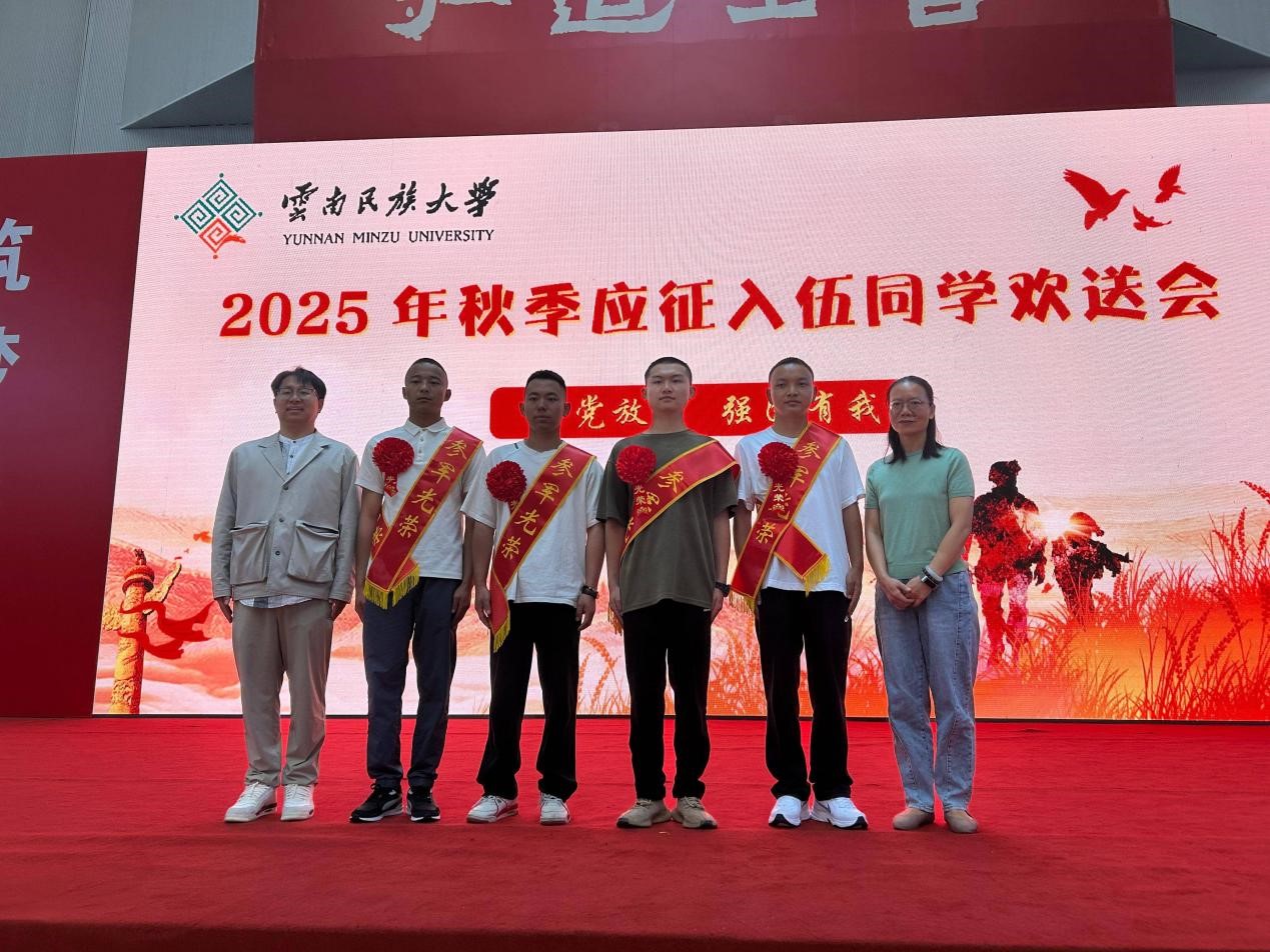 秋高气爽,军歌嘹亮。2025年9月4日,云南民族大学隆重举行2025年秋季应征入伍同学欢送大会,为即将奔赴军营、开启军旅生涯的优秀学子壮行。经济与管理学院(会计学院)积极响应国家号召与学校部署,高度重视并按要求完成了本季征兵动员与政策宣传工作,学院2025届毕业生经过严格选拔,光荣成为预定兵,展现了新时代经管学子的家国情怀与责任担当。学院党委副书记杨芳老师、辅导员罗晓宇老师代表学院出席了校级欢送会。