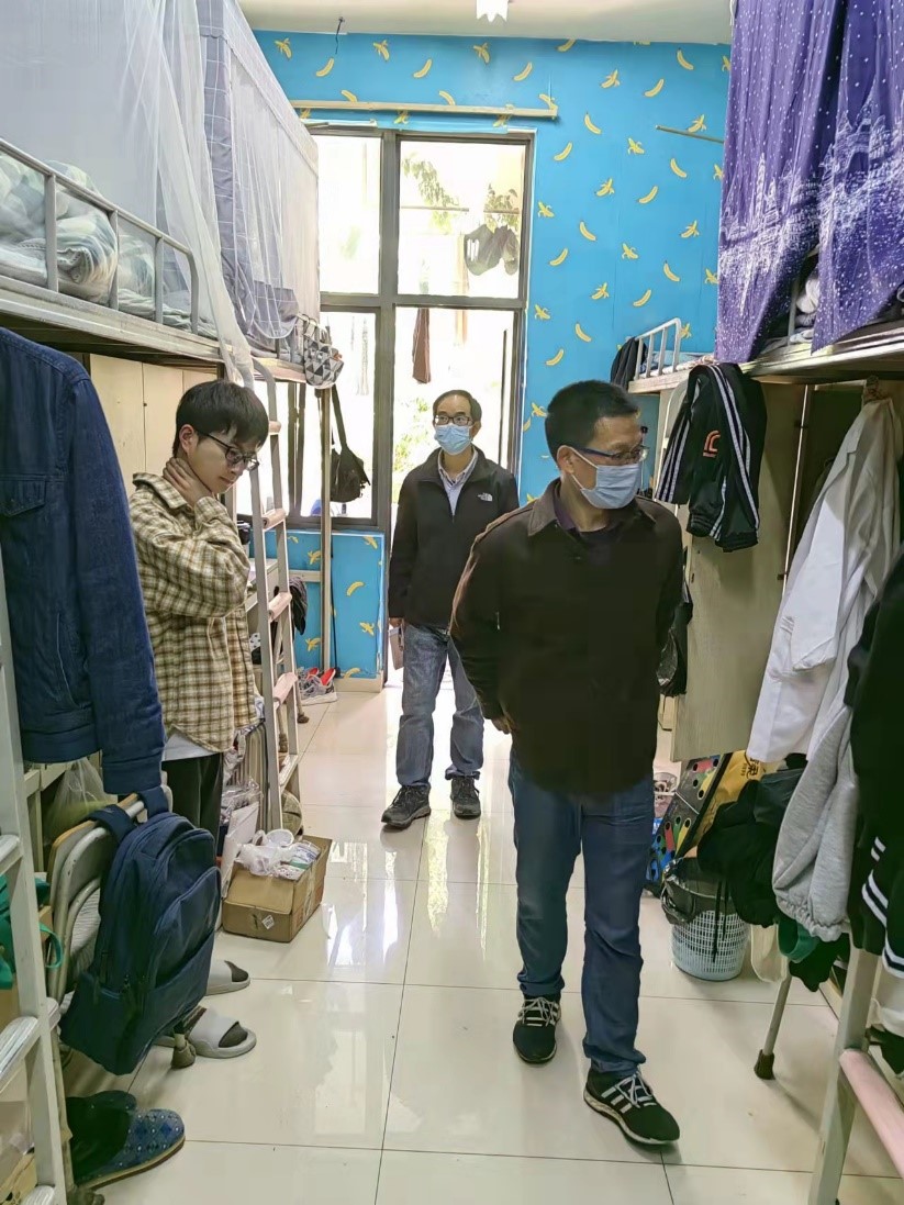 2022年3月25日下午,民族医药学院“疫情防控教师党员先锋队”结合教工党支部“主题党日”活动,全部下到基层一线,深入学生开展疫情防控的宣传。16名教工党员分成3组深入到学生宿舍,宣传新冠疫情防控、防范网络诈骗、防范宗教渗透相关知识和政策。3名教工党员深入学院各实验室,检查实验室安全和疫情防控工作,并向正在做实验的师生宣传实验室安全注意事项和实验室疫情防控要求。1名党员到2021级药物分析1班,参加疫情防控“主题班会”,向学生作了《从严从实,抓好疫情防控》的主题宣传。