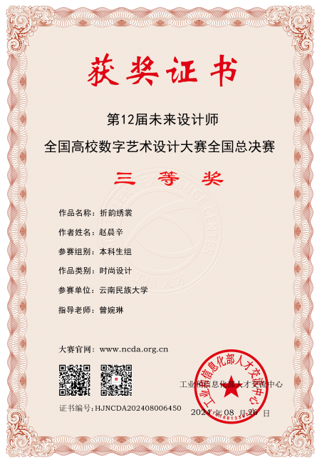 ▲赵晨辛获第12届未来设计师全国高校数字艺术设计大赛全国总决赛三等奖
