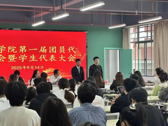 青春汇聚梦想,使命引领征程。在学院党委的坚强领导、校团委的悉心指导下,历经前期周密筹备,2025年9月14日上午,云南民族大学设计学院第一届团员代表大会暨学生代表大会(以下简称“双代会”)在学院丰华C213报告厅顺利召开。设计学院党委副书记于涛老师,辅导员陈莎莎老师以及全院各年级、各专业的90名团员代表与学生代表,肩负着全院青年的信任与重托参会。现场氛围庄重有序,代表们精神饱满、神情专注,以高度的责任感履行代表职责,共同为学院团学工作发展建言献策。