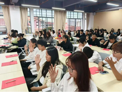 陈莎莎老师在致辞中对学院团学工作提出三点期望,一是要善用设计学科优势,讲好学院故事、传播青春正能量,让设计成果服务学院建设、助力社会发展;二是要做“勤学善思”的表率,珍惜课堂时光与实践机会,主动探索设计前沿领域,积极参与活动,夯实专业基础;三是要营造 “团结友爱、互帮互助” 的集体氛围,加强沟通联动,让团学组织成为凝聚青年、服务青年的 “温暖港湾”。