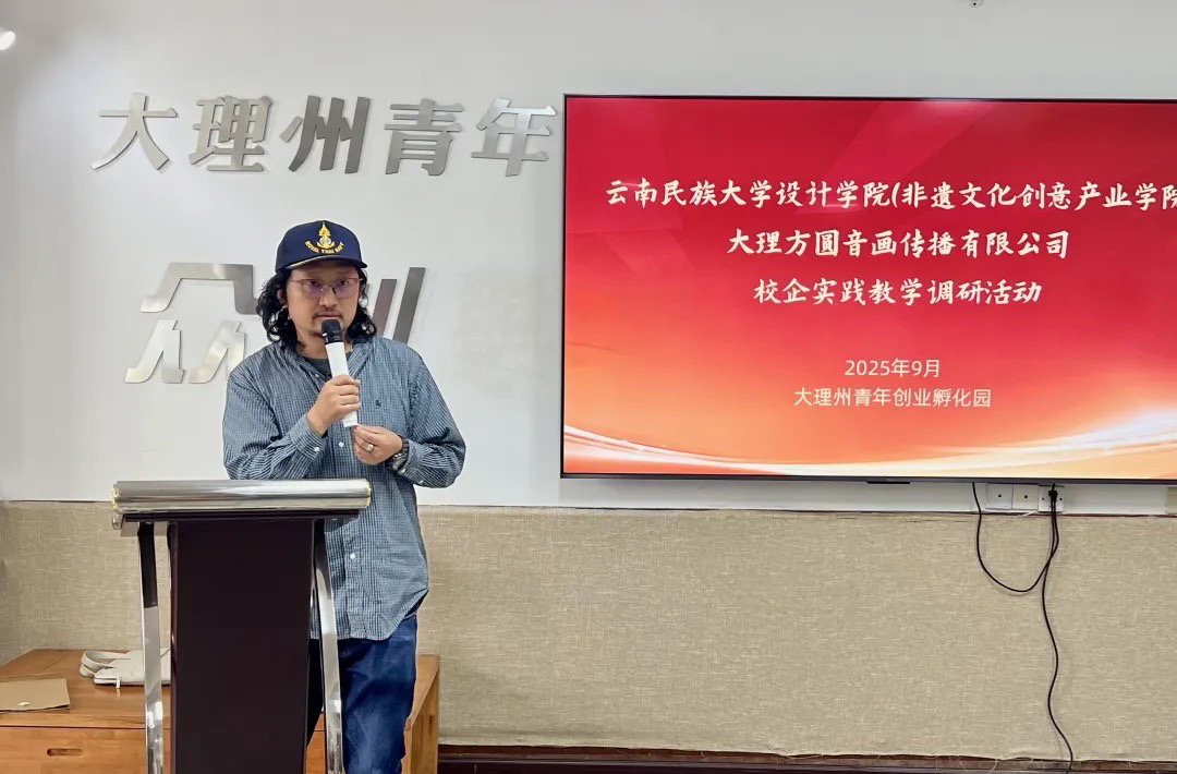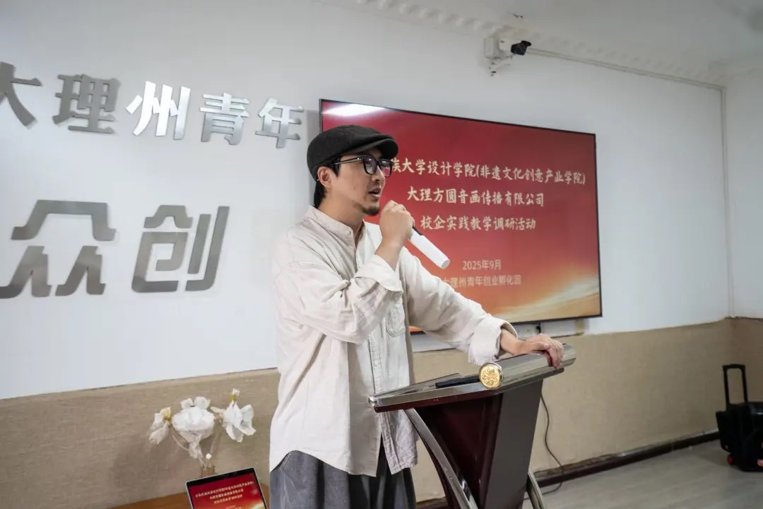 为深化校企合作,推动非遗文化传承与设计学院产业化发展,2025年9月8日至11日,云南民族大学设计学院(非遗文化创意产业学院)与大理方圆音画传播有限公司联合开展为期四天的实践教学调研活动。本次活动由我院两名教师带队,2022级、2023级共51名学生参与,聚焦大理地区非物质文化遗产的创意转化与产业开发,旨在通过实地调研拓宽学生视野、增强实践能力,进一步探索校企协同育人的新模式。