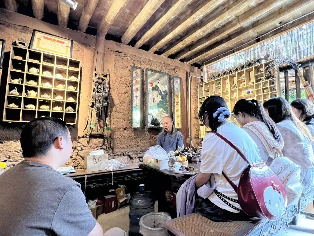 下午,师生们一起拜访了国家级非物质文化遗产传承人苏龙祥老师。在"泥人苏瓦猫小院",苏老师现场演示了瓦猫从选泥、制坯到塑形、烧制的完整工艺流程,并讲解了瓦猫在白族民居建筑、民间信仰中的文化寓意。学生们在传承人指导下通过亲手实践深化对非遗技艺的理解,并就瓦猫的当代设计转化与传承人展开热烈讨论。