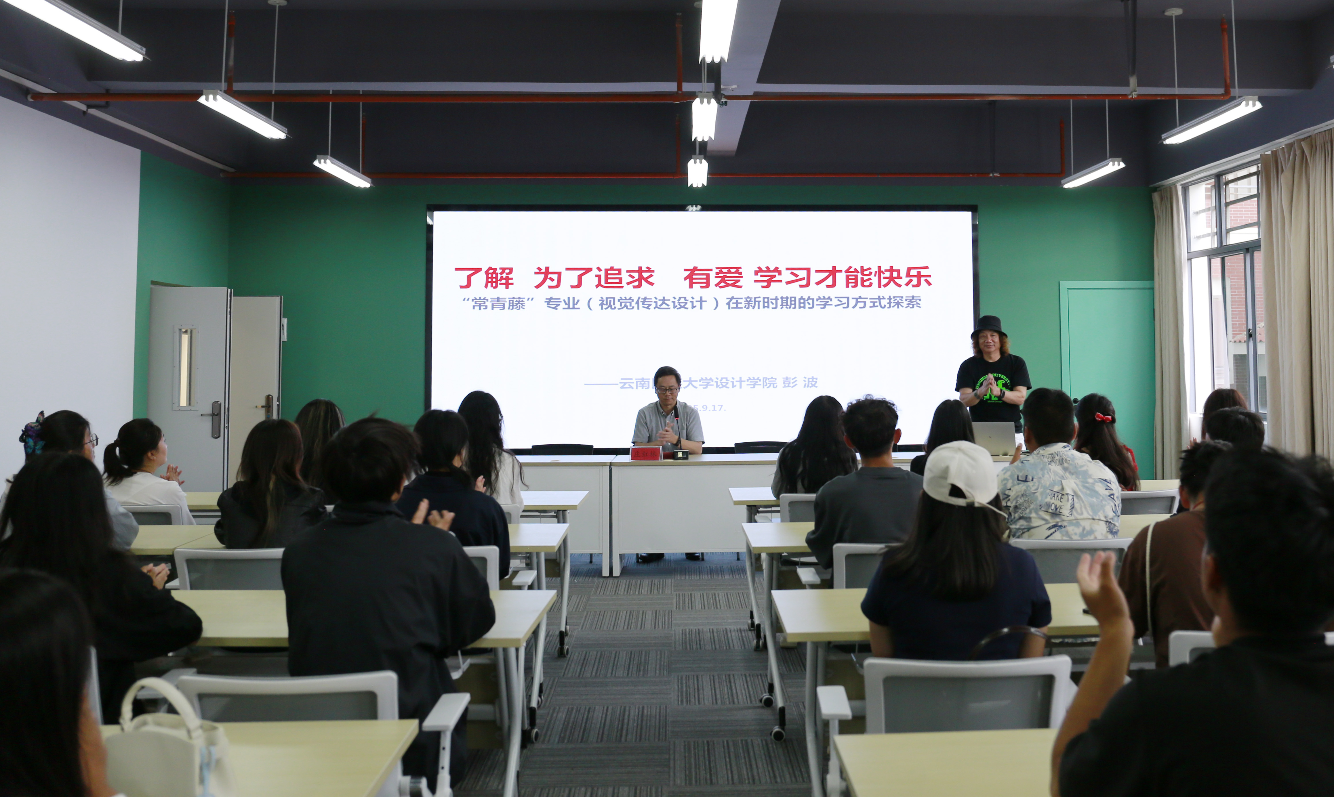 随后,在云南民族大学设计学院副院长庄红林主持下,云南民族大学设计学院银龄教师彭波教授为新生带来题为《“了解为了追求,有爱学习才能更快乐”—“常青藤专业”(视觉传达设计)在新时期的学习方式探索》的专题讲座,引导学生树立正确的学习态度与方法。