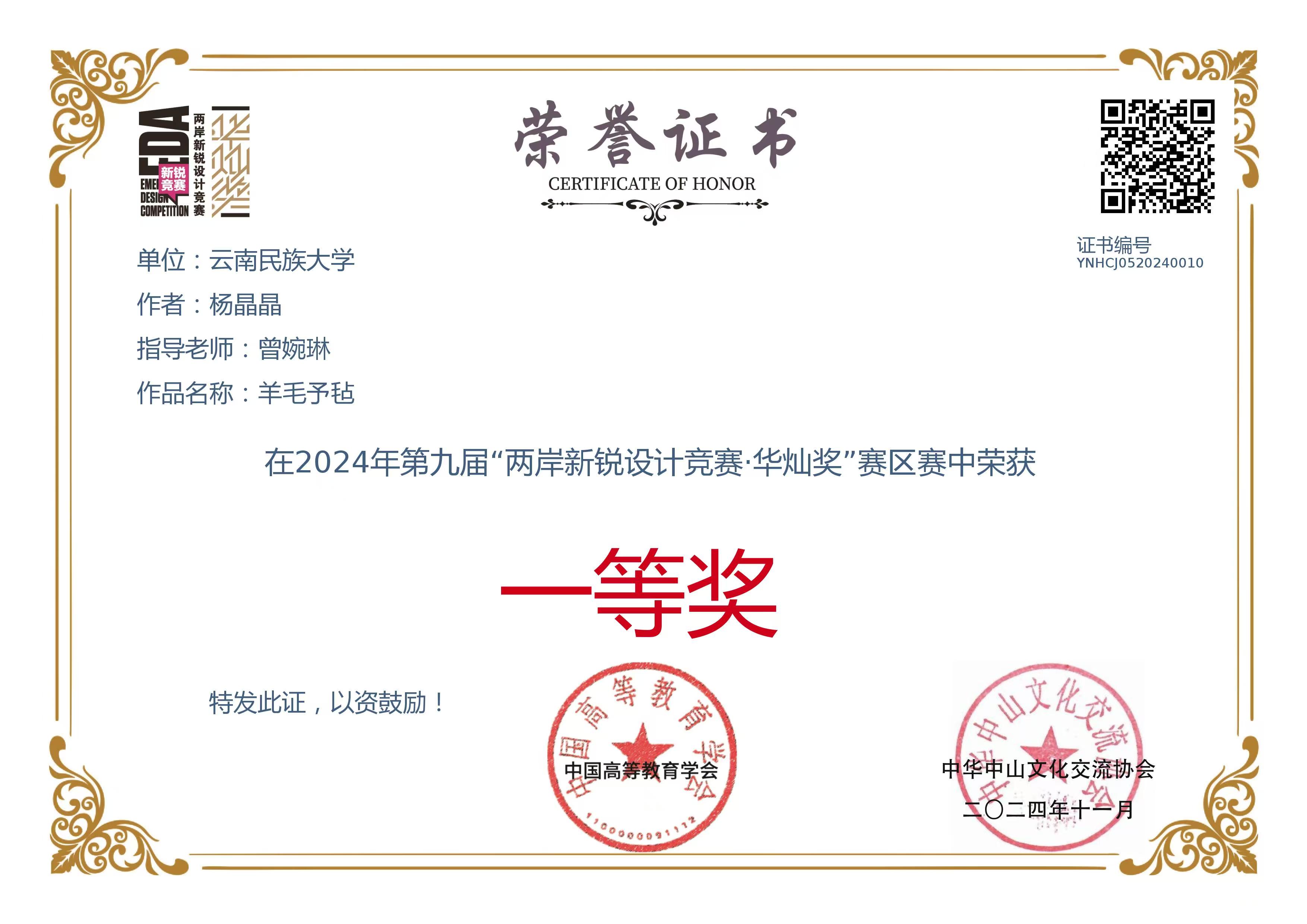 ▲学生作品《羊毛予毡》▲学生作品《羊毛予毡》获奖证书