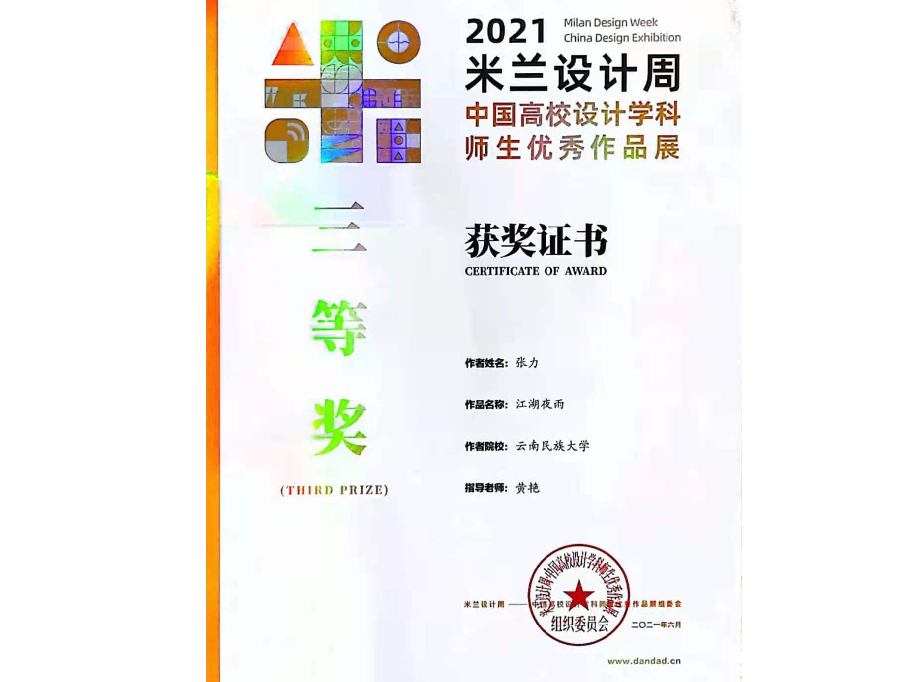 ▲张力获2021米兰设计周中国高校设计学科师生优秀作品展三等奖