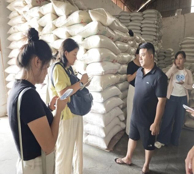 随后,调研组成员分组深入那目寨开展专题调研。聚焦乡村经济发展专题的同学前往腌菜糕加工厂、大米加工厂等特色企业调研。在腌菜膏加工厂,板老板介绍了腌菜膏制作流程:从清晨新鲜青菜挑选,到遵循傣族古法的陶缸发酵,再到现代车间里的巴氏杀菌、真空包装环节,每一步都藏着“守正”与“创新”的巧思。“这手艺是家里老人传下来的,”板老板指着墙角一口磨得发亮的老陶缸笑说,“早些年只是老人在家做几坛,左邻右舍分着吃。后来想着,这么好的味道不能藏着,得让更多人知道咱那目村的腌菜膏,知道德宏的味道。”于是,从家庭小作坊到规范加工厂,从本地集市到周边州市的商超货架,这口“傣家酸香”逐步走出村寨。加工厂根据市场需求改良酸度,包装印上傣族织锦纹样,使腌菜膏成为那目村的“移动名片”。