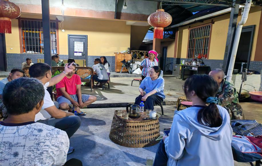 抵达糯福乡阿里村的第一天,调研团队师生与阿里村书记张爱华、云南省投资控股集团有限公司驻村第一书记朱尤高进行交流。两位书记回顾了阿里村社会经济文化发展变迁历程,介绍了近年来边境地区在民族团结、乡村振兴、边疆稳固等方面取得的显著成效,以及边境民族村寨在铸牢中华民族共同体意识建设中的重要意义。