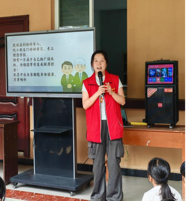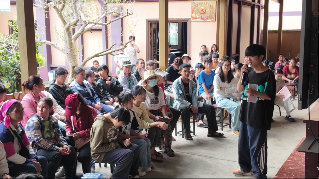 7月24日,在村委会活动中心,团队成员与阿里村学生及家长们围坐交流。带队老师王舫分享了自己的求学及工作经历;李俊一同学讲述了“走出大山更要回报大山”的故事,点燃了孩子们心中的梦想;李娜努和刘珂玥同学则生动描绘了丰富多彩的大学生活,激发他们对未来的向往;孟威珍同学为村里女孩开设成长教育专题课,用通俗语言普及自我保护知识,在山间播撒“爱自己”的种子。这场面对面的对话,不仅传递了知识与希望,更照亮了边境孩子们追梦的方向。
