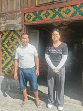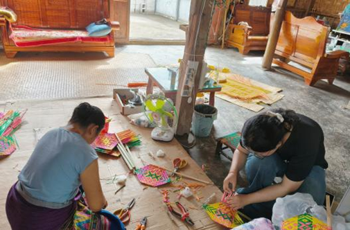 笔者与岩帅冷妻子一起做竹编扇子 邵敏摄